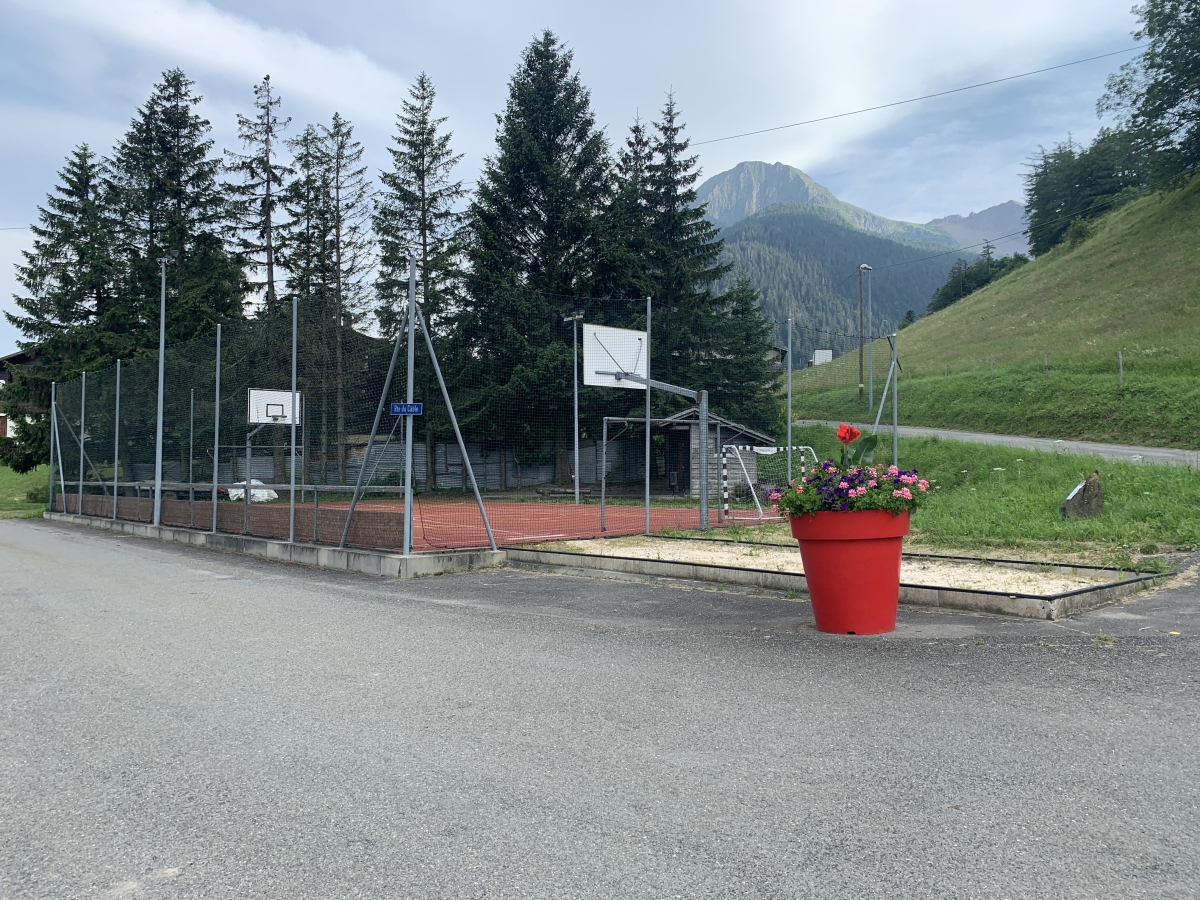 Terrain multisports accueillant un terrain de basket et une piste de pétanque en libre accès.